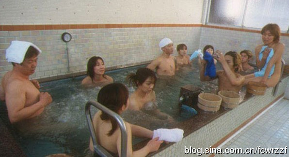日本人的洗浴方式是从原始的在河、湖共浴逐渐发展到在浴室等人工场所里共浴的。其温泉浴和中国一般的洗澡不同,不是在浴池里打肥皂搓澡,而是洗净以后才下水,目的是享受温泉美容强身的功效。温泉池所在处往往在风景绝佳的露天地方,与其说是洗浴,倒不如说是一种社交活动。