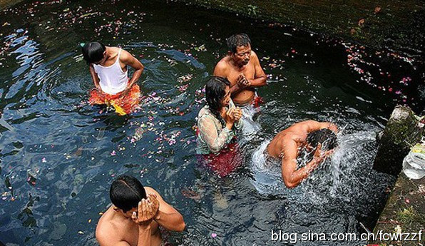 巴厘岛有一处泉水,有堵矮墙,很多男人赤裸着全身在里面洗圣泉,他们全然不顾游客们在看他们,另一边则是女人裸着在里面洗圣泉。