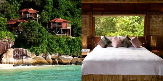 去过一次加帕玛拉,那些吹得天花乱坠的生态度假广告,就再入不了法眼了。与世隔绝的刁曼岛,一石一木皆是浑然天成的热带雨林—怀抱对自然的崇敬,几栋吊脚木屋镶嵌在中国南海上的翠玉之中—同雨林树冠们举案齐眉的树屋,便应运而生。而一间与自然完美共生的生态度假村,自然少不了环保细节:从裸露的原木墙体, 到仿若日式温泉般的露天浴缸、泳池,一亲自然芳泽,更添浪漫野趣。