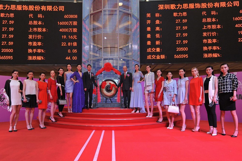 2015年4月22日,深圳歌力思服饰股份有限公司(以下简称“歌力思”或者“公司”)在上海证券交易所成功上市,标志着歌力思已成为2015年A股上海主板第一家女装上市企业。证券简称“歌力思”,股票代码“603808”,发行价格为每股19.16元。上市挂牌当日即以强势涨幅直接封涨停板,股价由19.16元涨至27.59元,涨幅44%。