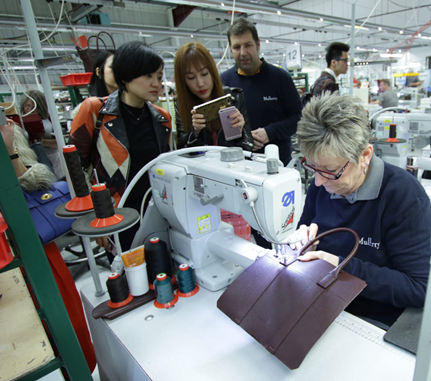中国博主徐峰立(博主名:徐峰立)、王岚(手边巴黎 urruolan)、王静昌(Fashion Guru)、和黄凯莉(公众号:凯莉的30日实验)、李菲(芭珠表姐)于2017年3月28日参观了Mulberry 萨默赛特郡工厂,探索发现Mulberry 2017春夏系列,同时亲眼见证蕴藏在品牌标志性皮革包袋背后的精湛手工艺。