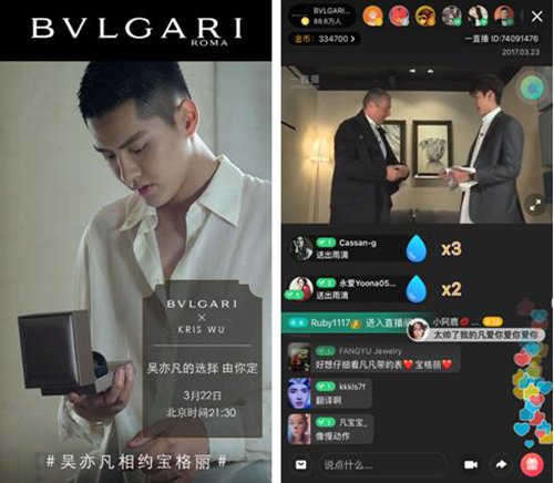 当迪奥开始在微信上卖包的时候,卡地亚、BVLGARI等联合明星在一众直播软件上搞起了“网红式”的直播,不免让网友惊叫奢侈品跨界起来也是十分大胆。