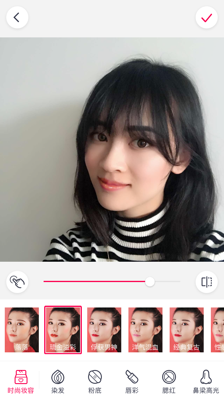 (通过滤镜和背景,实现“兰蔻小黑瓶”的美颜功效)
