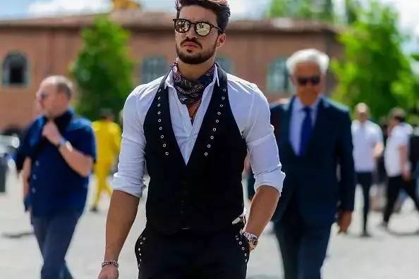 这样戴方巾稍稍露出点胸膛,雄性荷尔蒙的味道就喷薄而出: