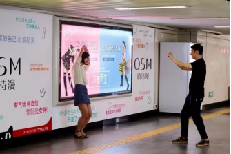 日前,一组奔放洋气有深度,简约时尚国际范的海报登陆上海地铁1号线徐家汇14号口通道。