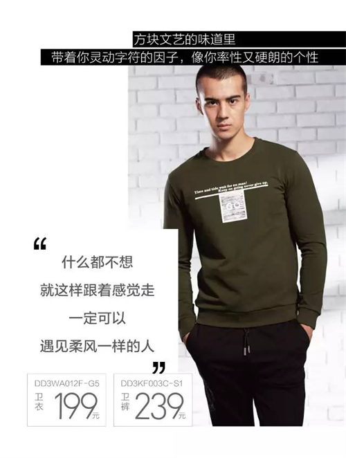 这个秋天,雅鹿男装的设计师们推出了众多单品与潮流,也给男士们推荐合理的穿搭方案和示范,今年秋冬的雅鹿男装,在颜色、线条、花纹图案等方面不断推陈出新,通过时装向男士传递一种轻松自由的穿衣观念和简单从容的生活方式,从而体现年轻又不浮躁个性。