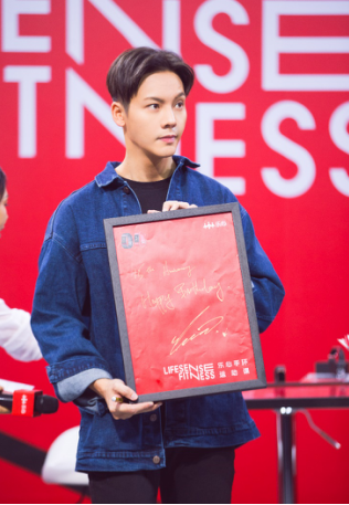 (《乐心手环运动课》陈伟霆手举回赠品牌方的能量祝福板)