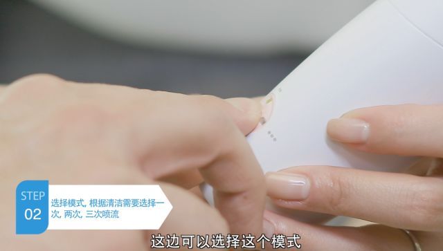 2. 选择模式-根据清洁需要,选择一次、两次或三次喷流。