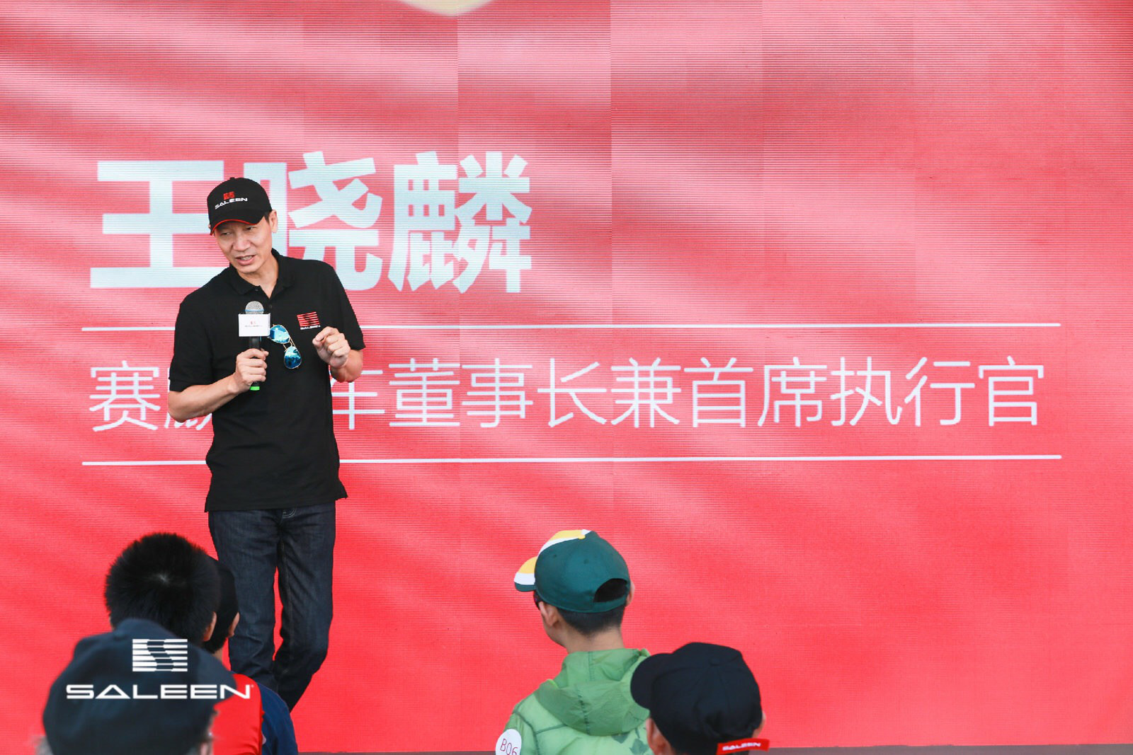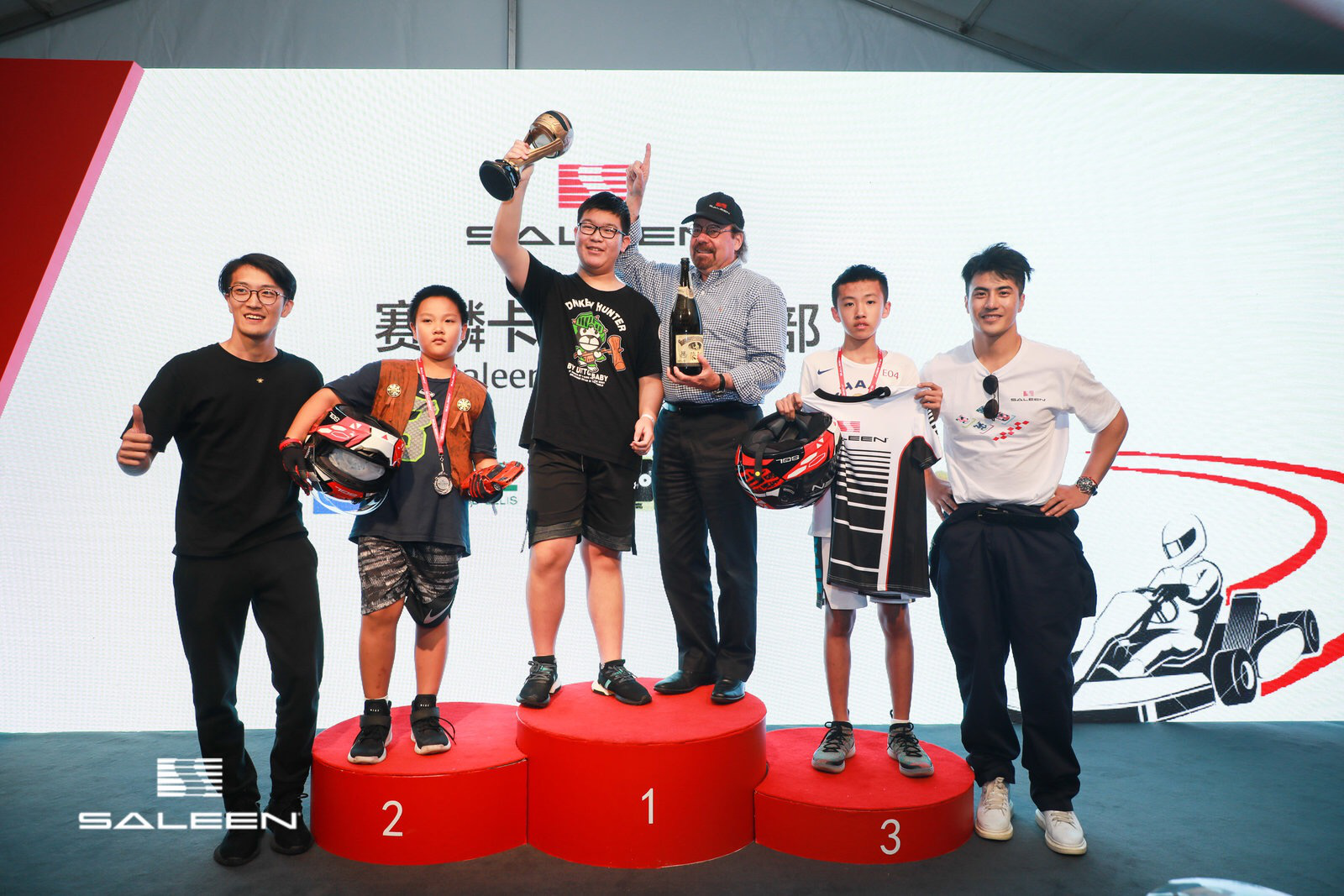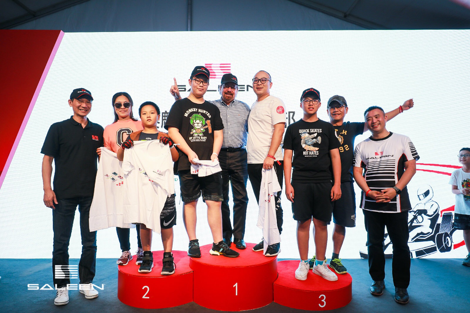 赛麟品牌创始人史蒂夫·赛麟、赛麟汽车董事长兼首席执行官王晓麟、赛麟汽车执行副总裁毛天华为亲子接力赛前三强颁奖