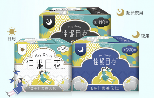 佳妮日志卫生巾素棉无忧系列共有素棉无忧日用卫生巾、素棉无忧迷你卫生巾、素棉无忧夜用卫生巾三种产品。