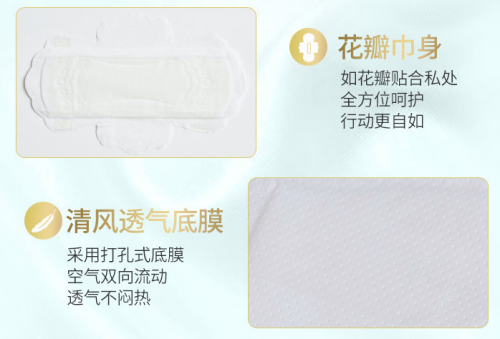 日用型根据亚洲人体工学的巾身长度设计,满足经期日间需求;夜用型长度为290mm,作为经典的夜用尺寸,日夜两用超方便;迷你型专为经期前后少流量设计,比护垫长,比卫生巾小,小流量使用刚刚好,不怕经期回潮。