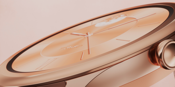 “圆”是手表不过时的经典造型。当圆形的手表戴在手腕上时,人们的视觉重心将自然地聚焦在手表的圆心,视觉观感能直观舒适。同时,圆润流畅的线条也能带来更舒适的佩戴感。