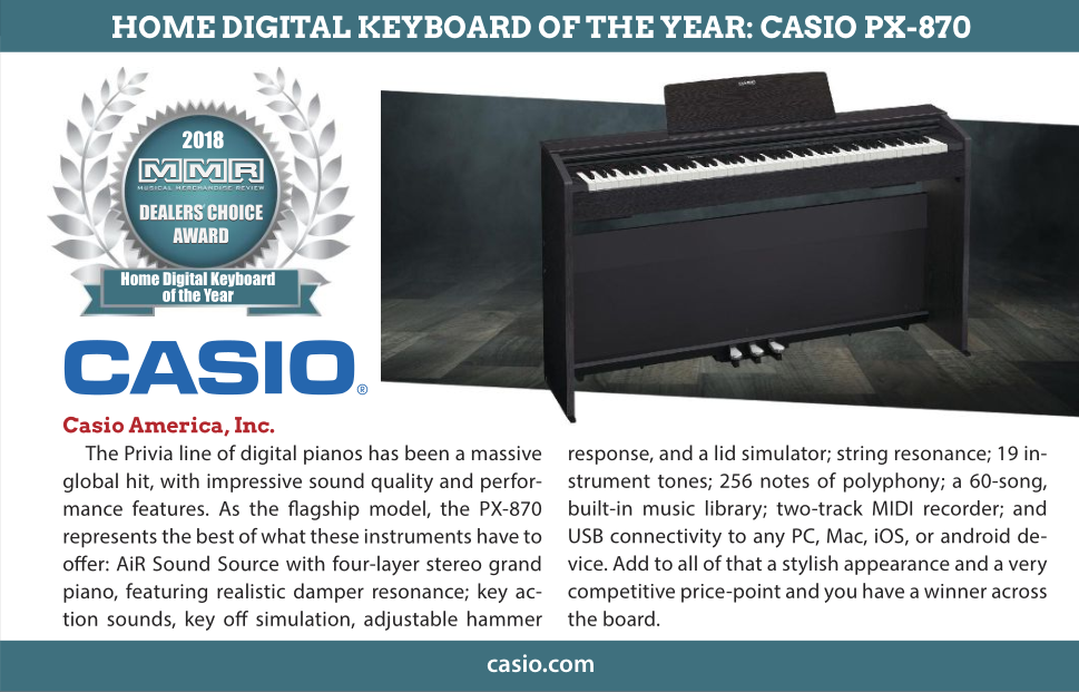 经过15年的不懈研发,卡西欧成功地作为电钢琴制造业的奠基者,不断扩容电钢琴市场,其中Privia飘韵系列电钢琴深受音乐爱好者的喜爱,热门产品层出不穷。